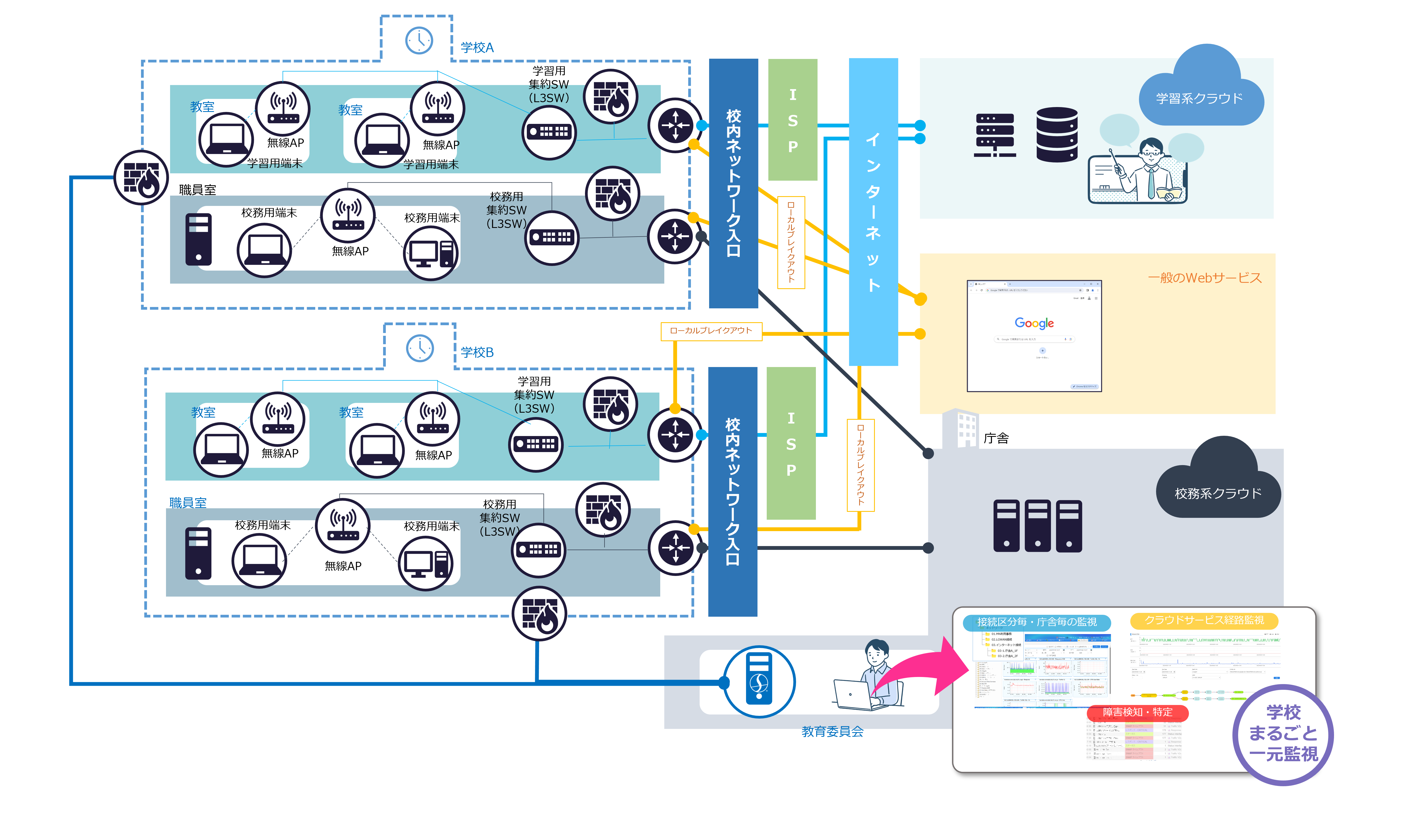 →教育委員会/保守ベンダー等の運用担当側で各学校