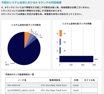 また、1 分間隔での詳細な性能情報を収集するため稼働状況を正確に把握できるだけでなく、5 年間分の性能情報を非圧縮で保持できるため、中長期の稼働傾向も容易に把握することが可能となり、トラブル発生時の問題解決から精度の高いキャパシティ計画の立案までおこなうことができます。